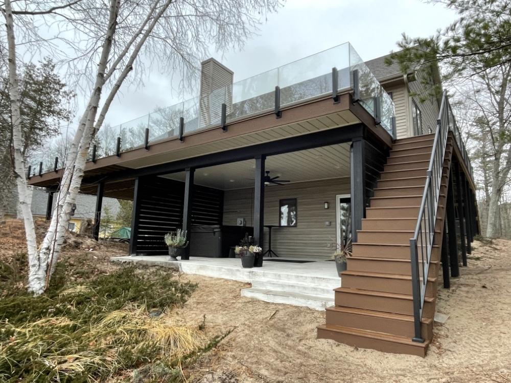 - Clear Glass Railings: Modern look with unobstructed views; great for waterfront or scenic properties